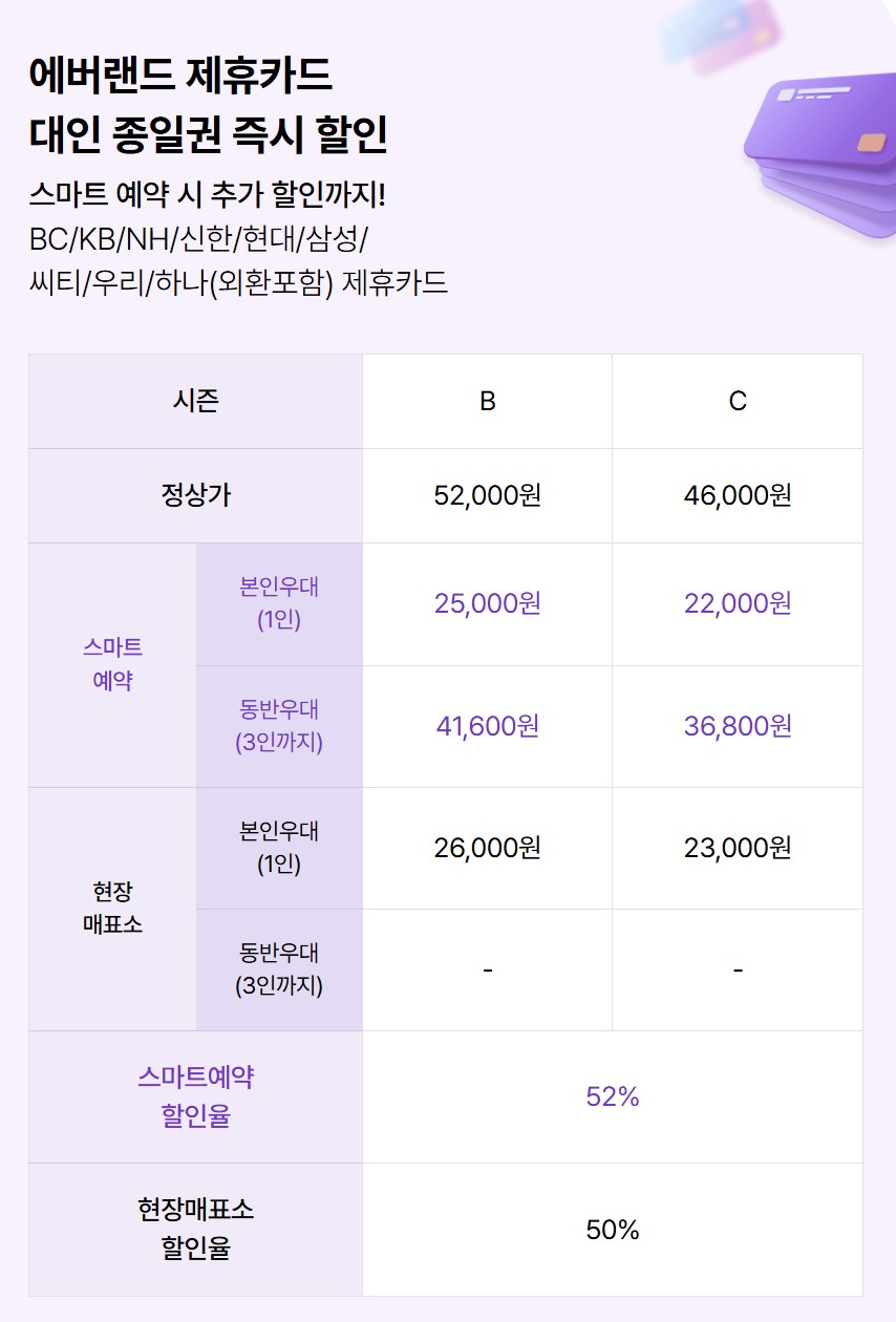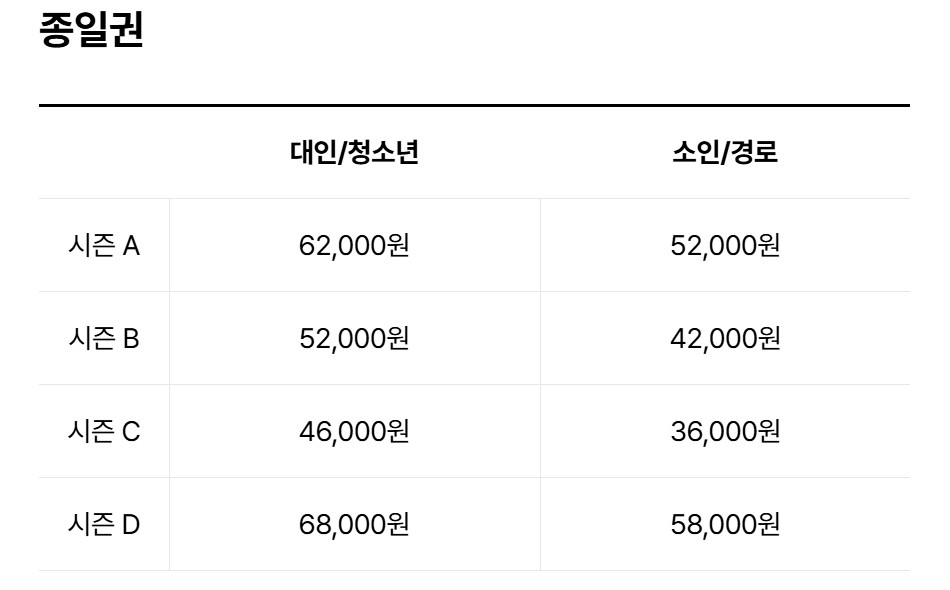 종일권 기준으로 각 52,000원, 46,000원이에요